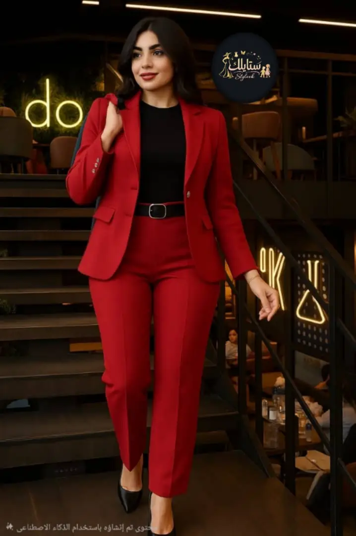تألقي في مناسباتك وعملك مع هذا الطقم النسائي الفاخر، تصميم يجمع بين الرسمية واللمسة العصرية الجذابة.
