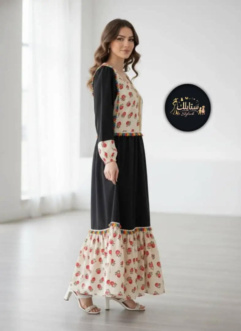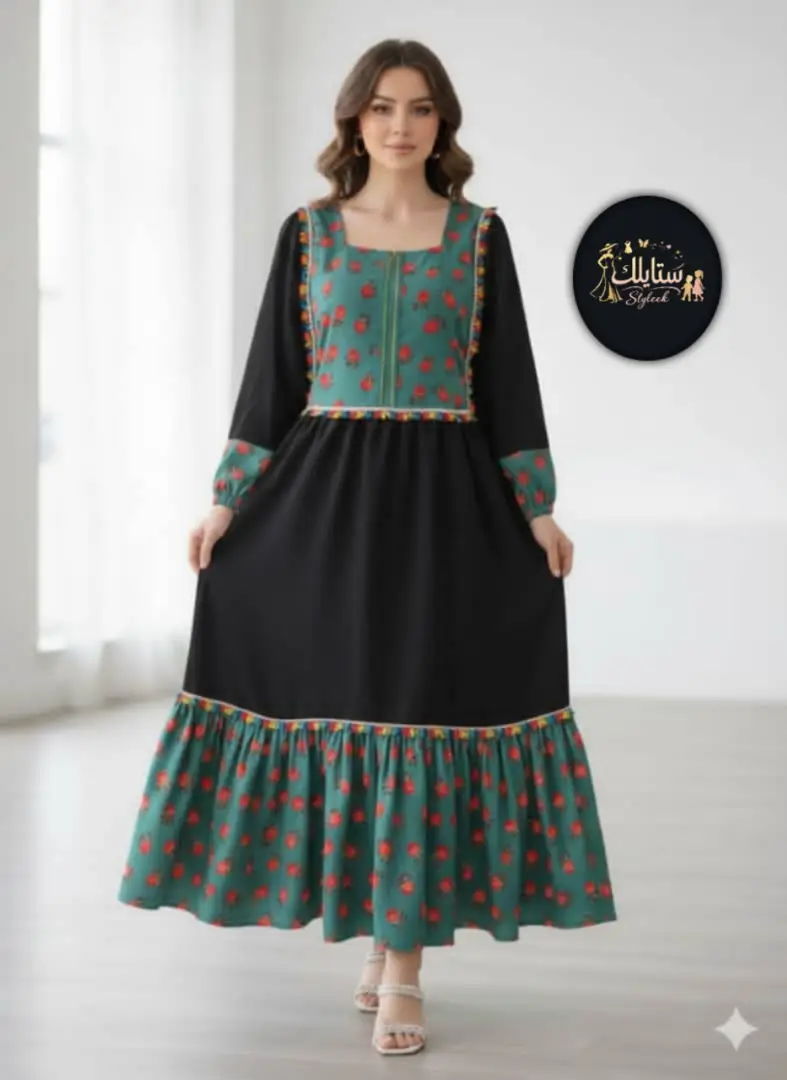 🌟تألقي بجمال فريد مع هذ الفستان الأنيق و الراقي، والتي تتميز بتصميمها العصري وتطريزها التراثي الملون: