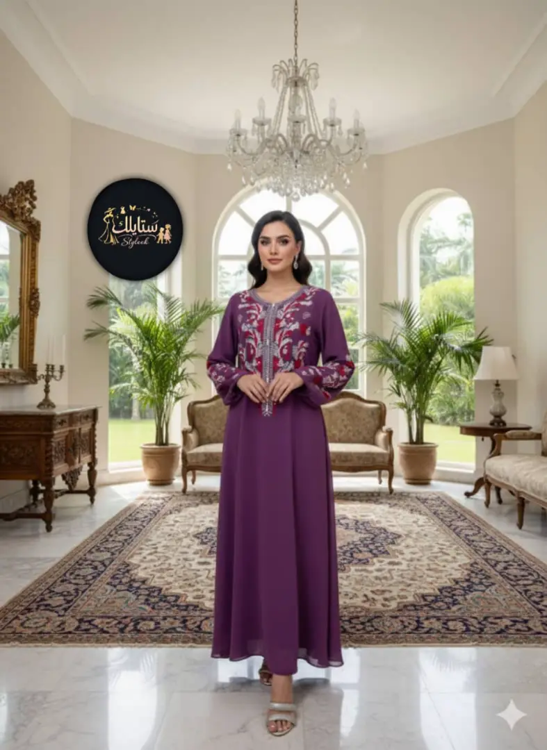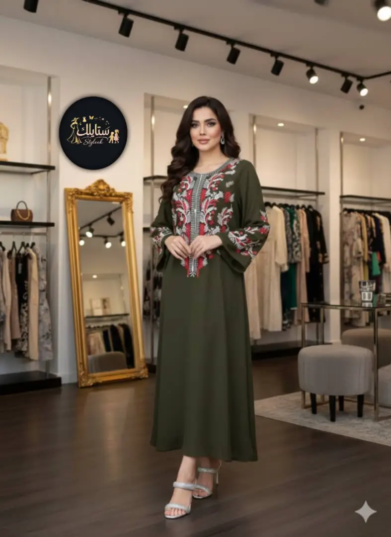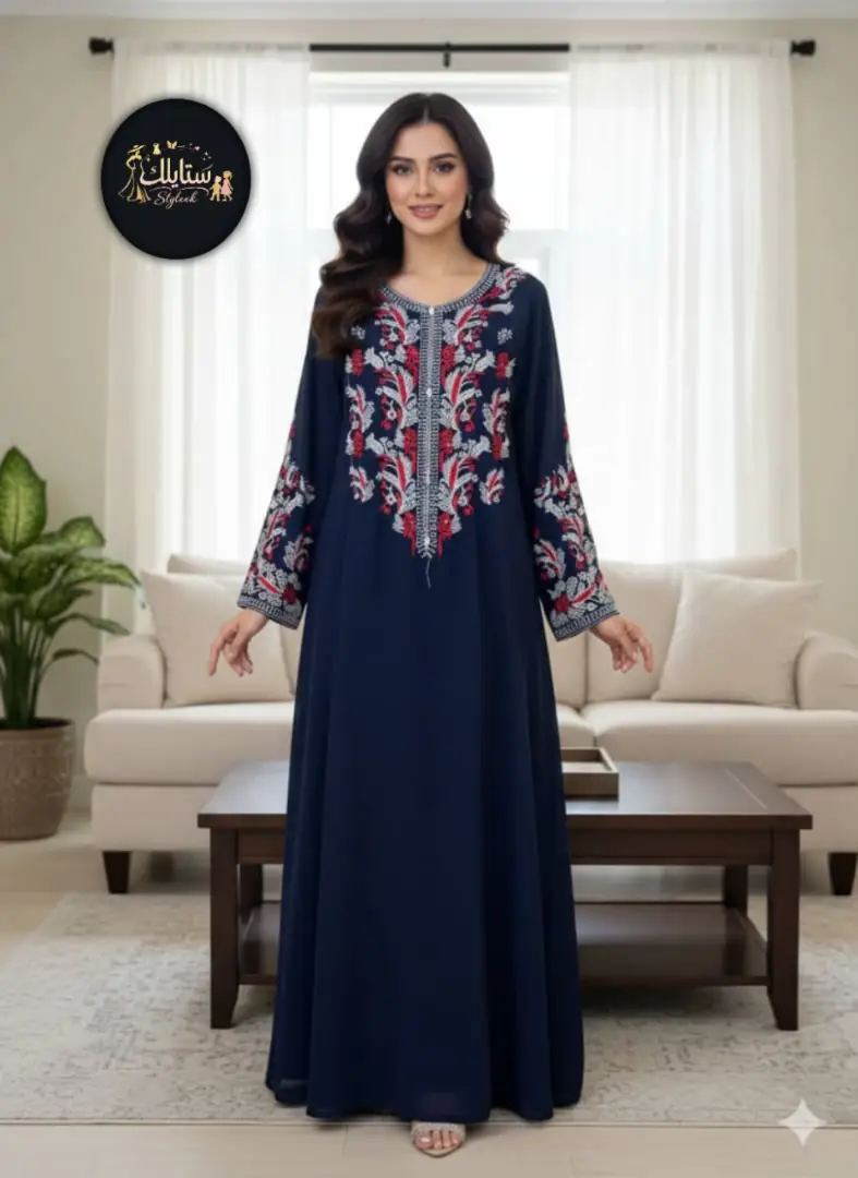 *جلابيه طويل علا تطريز كمبيوتر طارات بعده اللوان علا تخريز لول الصدر واليدات شغل متقن جدا*