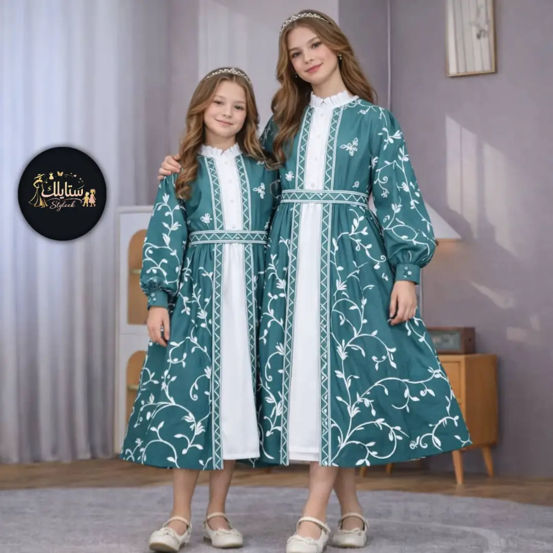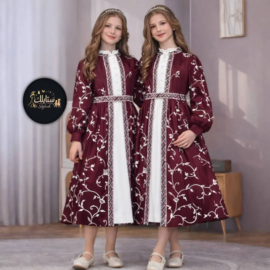 يتميز الطقم بتطريز أنيق فاخر موزع بدقة على القماش الخارجي،*