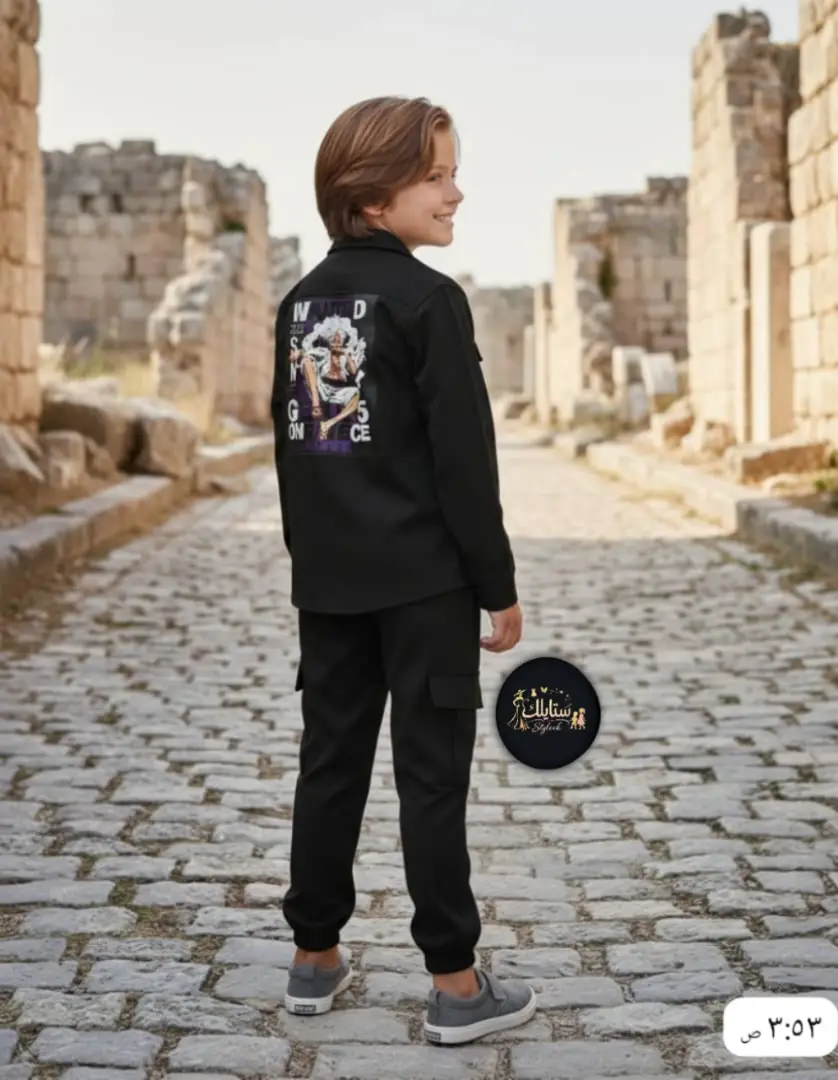 🌸 *1/ جاكت مكمم على ازرار*رسمه ون بيس لوفي قبعة القش🤩
